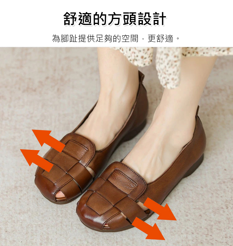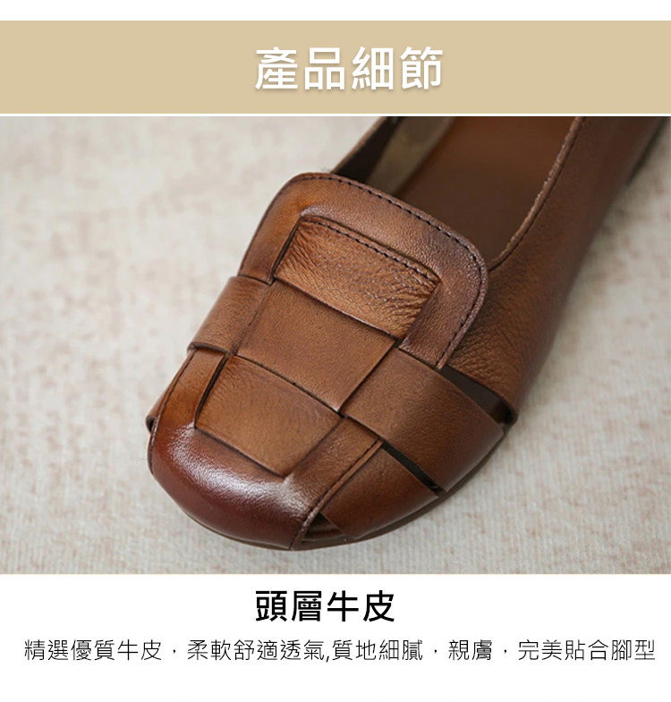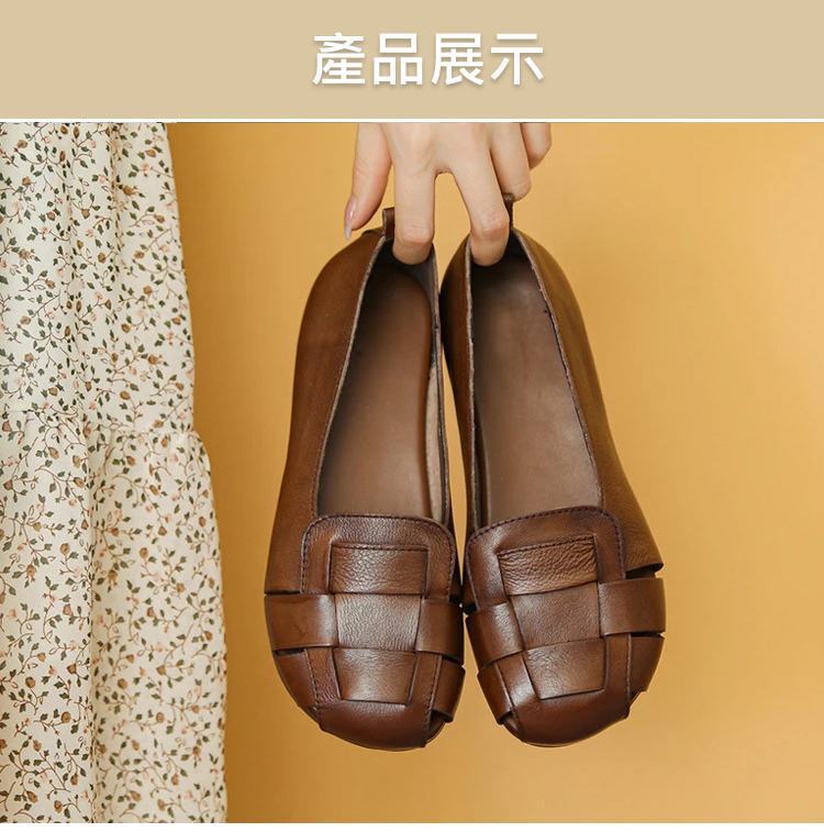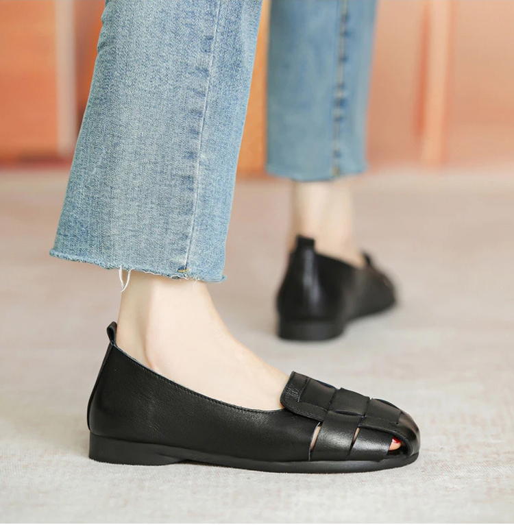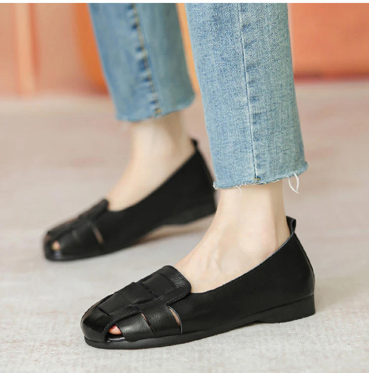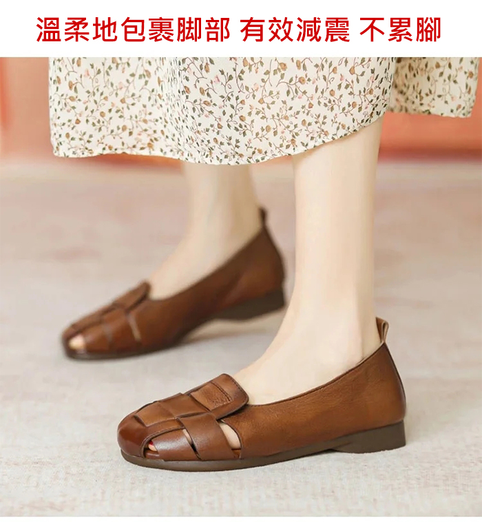 軟皮鏤空平底豆豆鞋