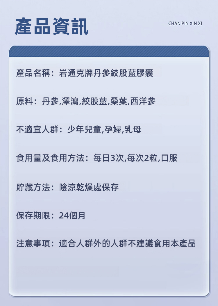 【降壓通血管】丹參絞股藍膠囊