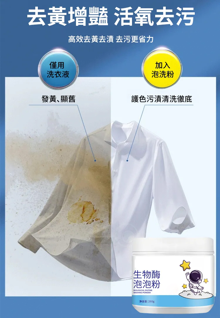 衣物泡洗去黃漬增白生物酵素泡泡粉 懶人洗衣去漬爆炸鹽 泡沫洗衣去污漬神器